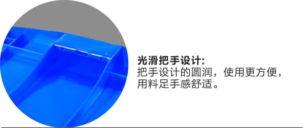 把手:完全按照人體工程學的原理進行設計,圓弧形的把手設計更趨于舒適性、操作方便,便于人工搬運。